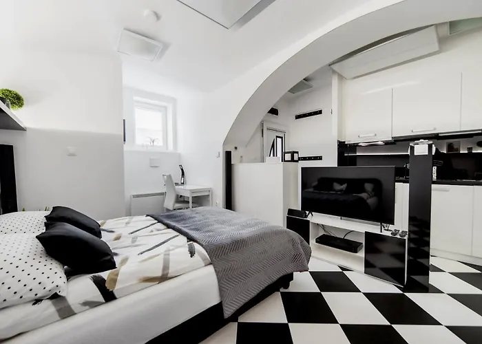 Onsite self-catering options include a fully furnished kitchen complete with an electric kettle, a refrigerator, and kitchenware. Maxim offers Central European dishes and lies just 5 minutes' walk away. The 1-room Black And White Studio is relatively close to Lower cable car station.